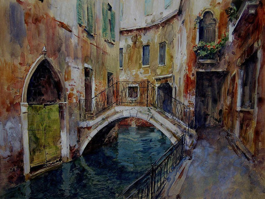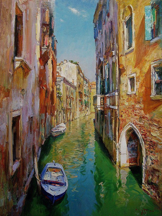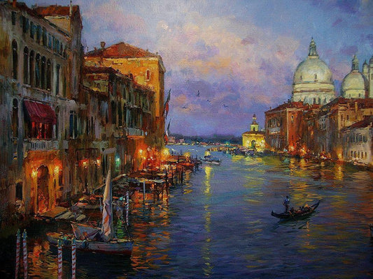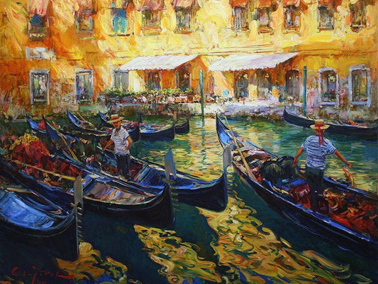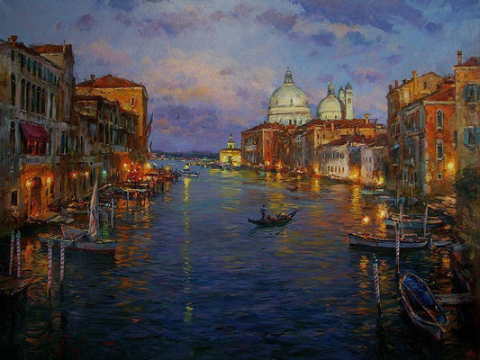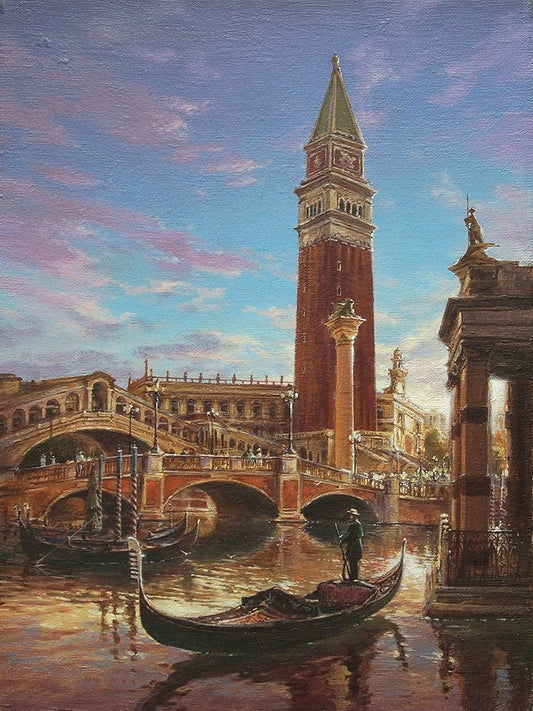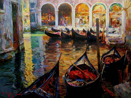 Venetian Romance White Modern Wood Framed Art Print with Double Matting by Yushkevich, Viktor