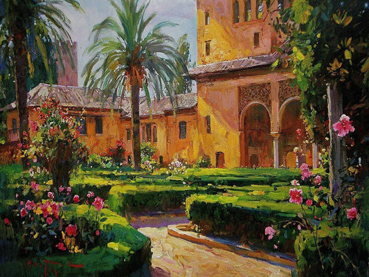 Alhambra in Spain White Modern Wood Framed Art Print with Double Matting by Sviridov, Sergei