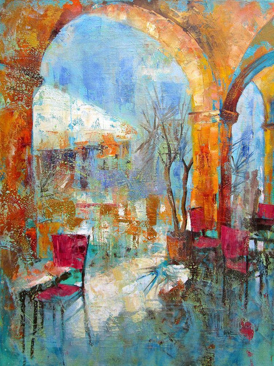 Small Cafe White Modern Wood Framed Art Print with Double Matting by Obuchovsky, Yury