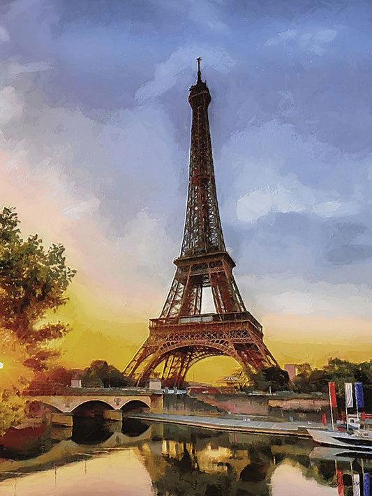 Eiffel Tower View White Modern Wood Framed Art Print with Double Matting by Medeiros, Celito