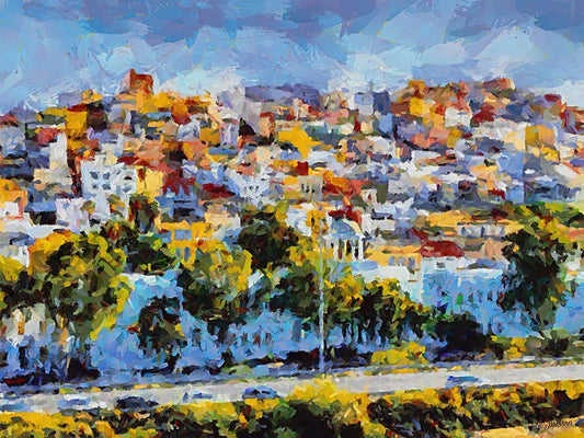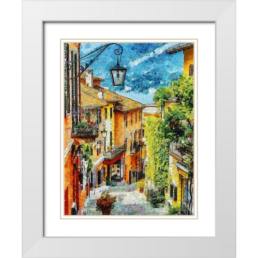 Town with colorful Roofs White Modern Wood Framed Art Print with Double Matting by Medeiros, Celito