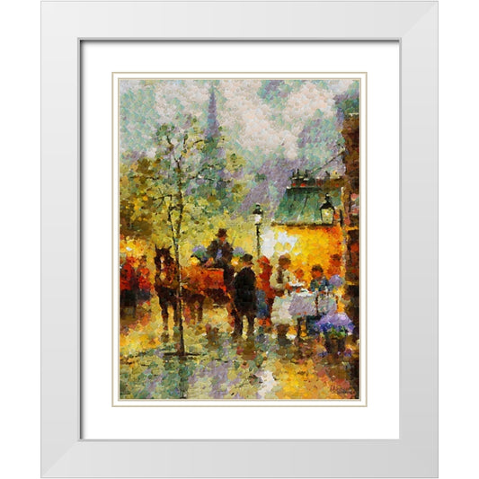 Street in Paris White Modern Wood Framed Art Print with Double Matting by Medeiros, Celito