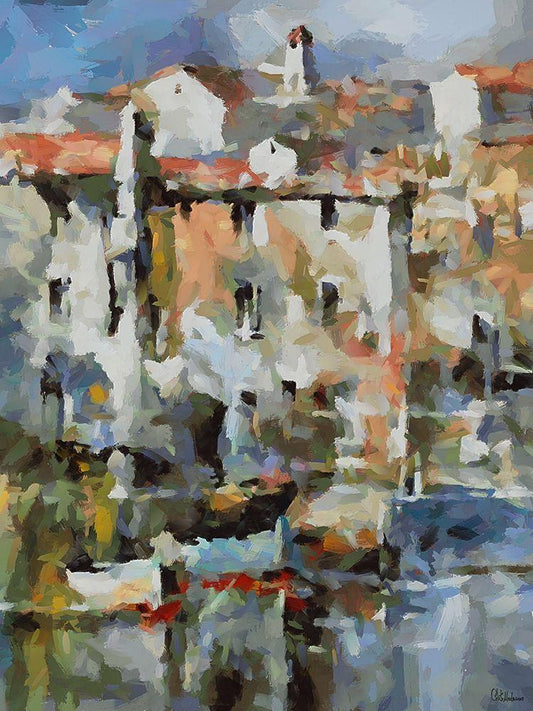 Boats in Harbour I White Modern Wood Framed Art Print with Double Matting by Medeiros, Celito