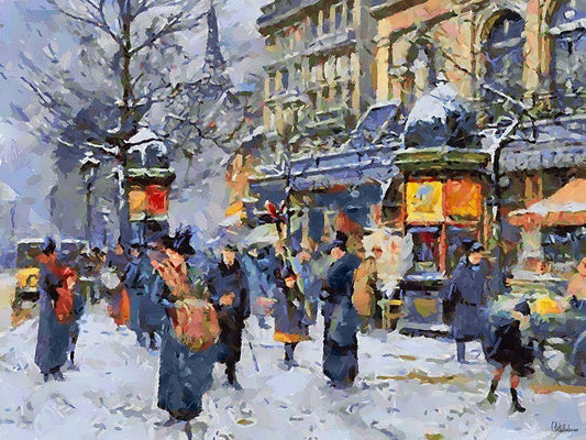 Old Paris in Winter I White Modern Wood Framed Art Print with Double Matting by Medeiros, Celito