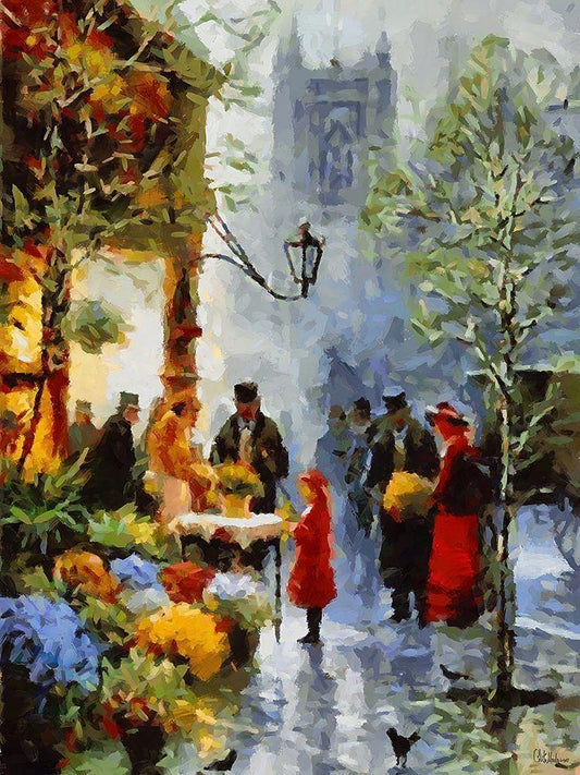 Old Paris Flower Market White Modern Wood Framed Art Print with Double Matting by Medeiros, Celito