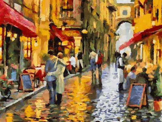 Restaurants on the Street White Modern Wood Framed Art Print with Double Matting by Medeiros, Celito