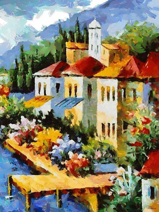 Flower Town by the Lake White Modern Wood Framed Art Print with Double Matting by Medeiros, Celito