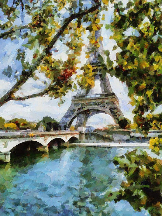 Eifell Tower view from the Lake White Modern Wood Framed Art Print with Double Matting by Medeiros, Celito