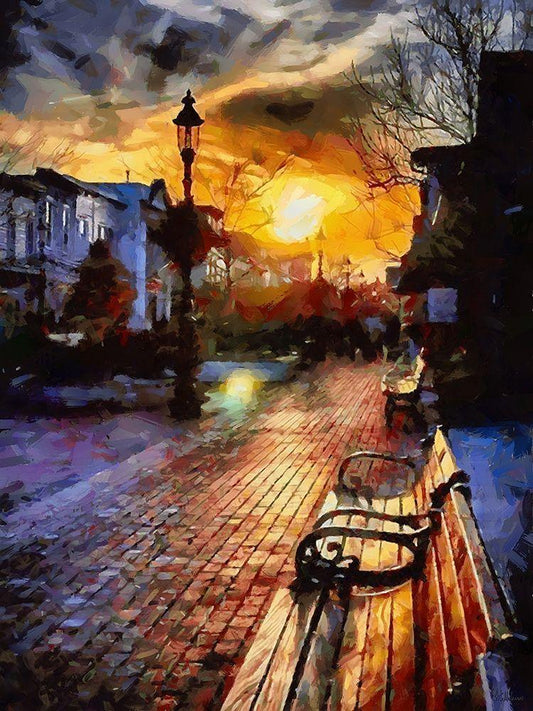 Bench by Sunset White Modern Wood Framed Art Print with Double Matting by Medeiros, Celito