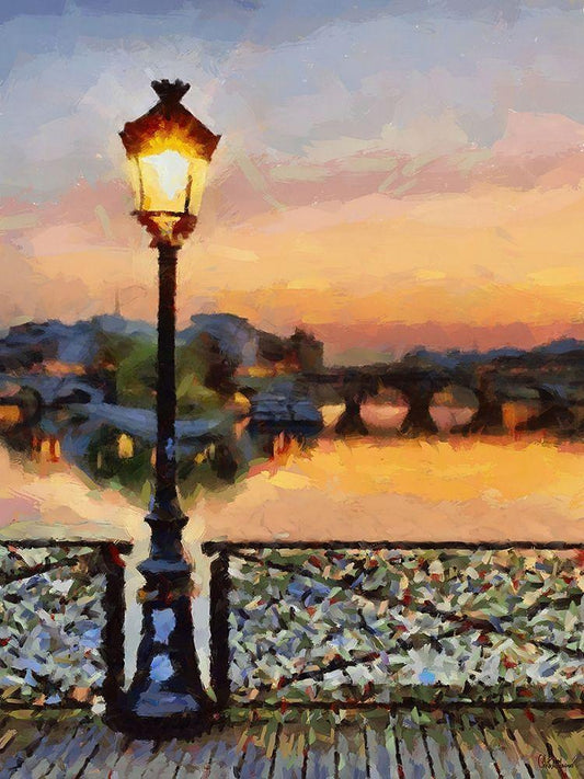 Bridge View with Lamp White Modern Wood Framed Art Print with Double Matting by Medeiros, Celito