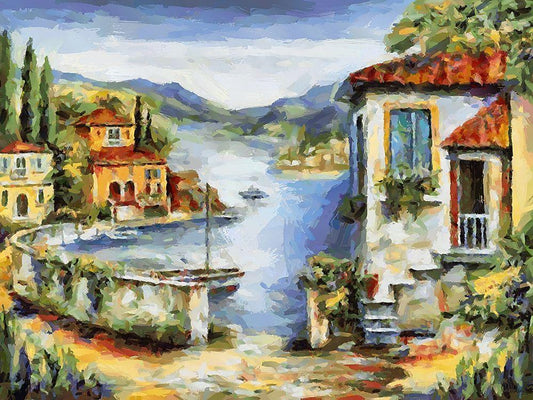 Boats with colorful Houses XII White Modern Wood Framed Art Print with Double Matting by Medeiros, Celito