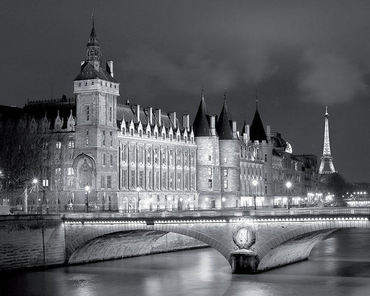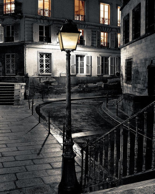 Paris by night White Modern Wood Framed Art Print with Double Matting by Kaly