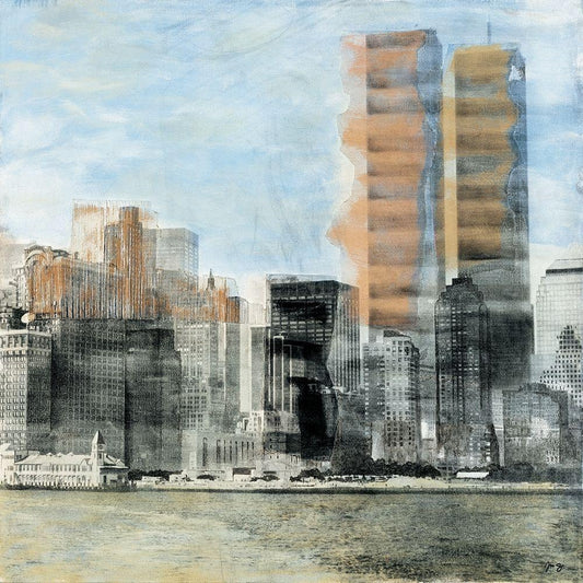 Twins New York White Modern Wood Framed Art Print with Double Matting by JMG