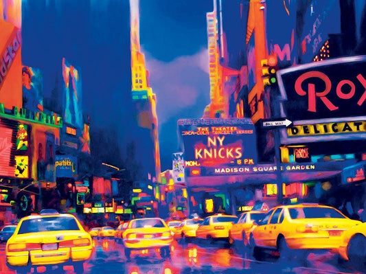 Times Square White Modern Wood Framed Art Print with Double Matting by Unknown