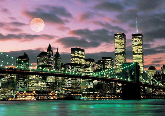 Brooklyn Bridge White Modern Wood Framed Art Print with Double Matting by Thalie