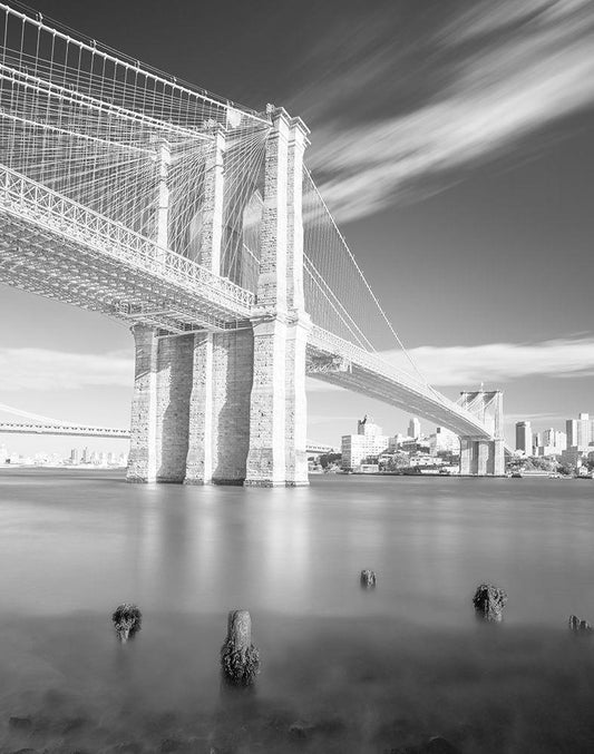 Brooklyn Bridge Black and White White Modern Wood Framed Art Print with Double Matting by Masik, Marek
