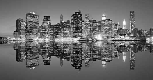 Manhattan Night Light I White Modern Wood Framed Art Print with Double Matting by Anonymous