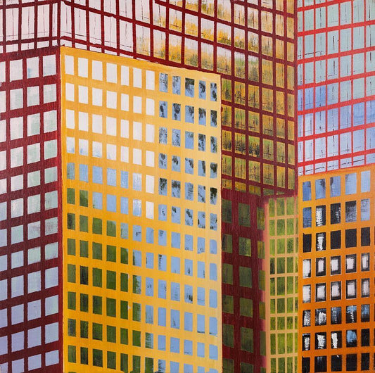 SKYSCRAPER WINDOWS White Modern Wood Framed Art Print with Double Matting by Atelier B Art Studio