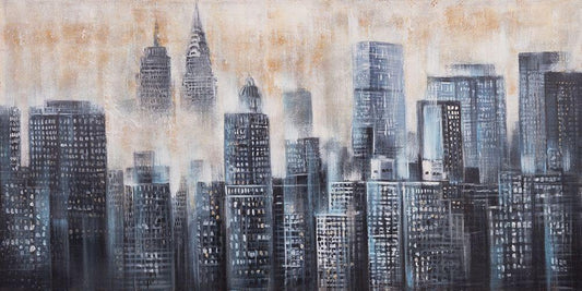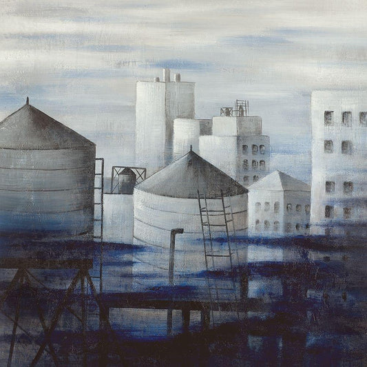 GRAY CITY WITH BLUE CLOUDS White Modern Wood Framed Art Print with Double Matting by Atelier B Art Studio