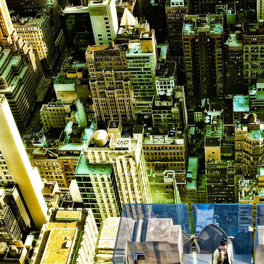Nyc Skyline White Modern Wood Framed Art Print with Double Matting by Carozzi, Fiorenzo