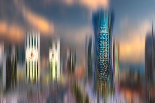 City Skyscrapers White Modern Wood Framed Art Print with Double Matting by Allam, Abdelkader