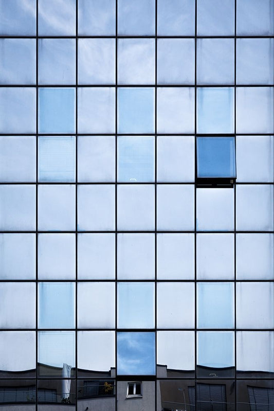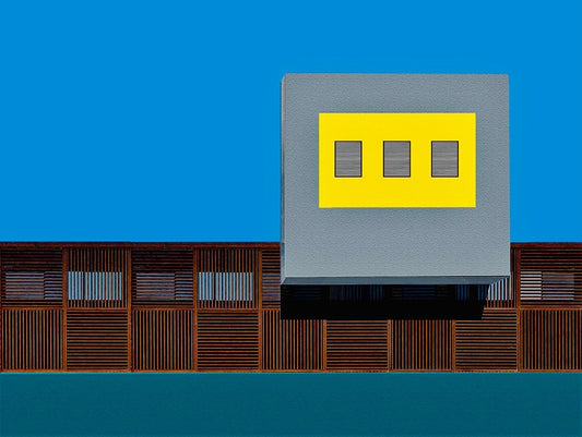 Multicoloured Mirror Building White Modern Wood Framed Art Print with Double Matting by Claes, Gilbert
