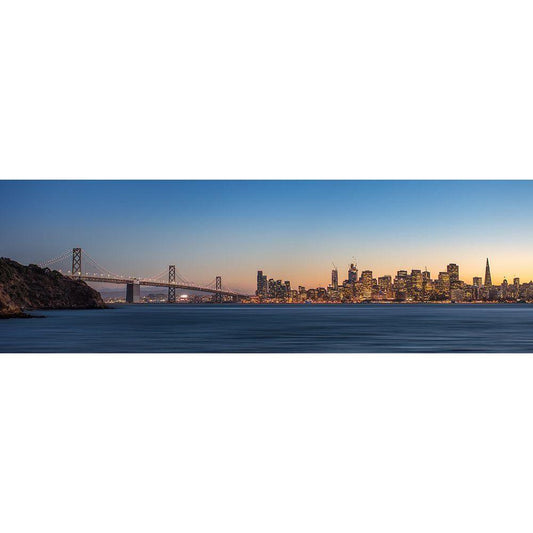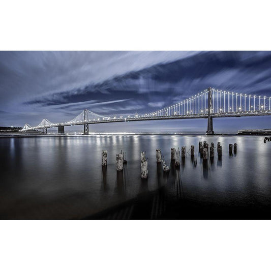 The Bay Bridge Lights San Francisco Black Modern Wood Framed Art Print with Double Matting by Harriman, Toby