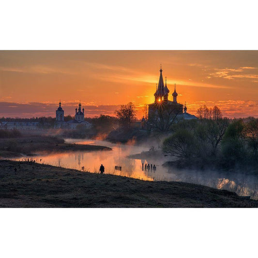 Dawn In Dunilovo Black Modern Wood Framed Art Print with Double Matting by Davydov, Sergey