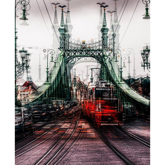 On The Tram Black Modern Wood Framed Art Print with Double Matting by Chiriaco, Carmine