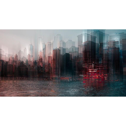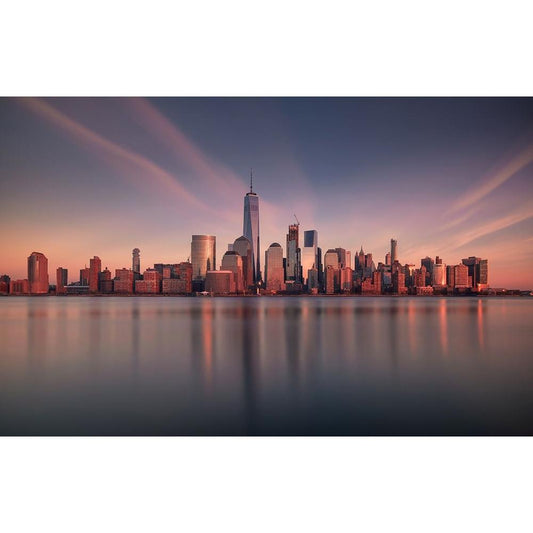 Lower Manhattan At Dusk Black Modern Wood Framed Art Print with Double Matting by Dai, Wei