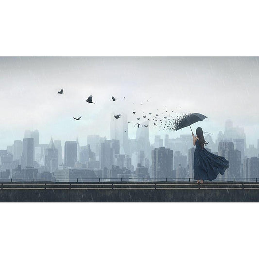 A Qfloatingq City Black Modern Wood Framed Art Print with Double Matting by Dai, Wei