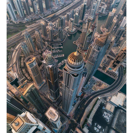 Super Moon Burjkhalifa Black Modern Wood Framed Art Print with Double Matting by Anjum, Zohaib