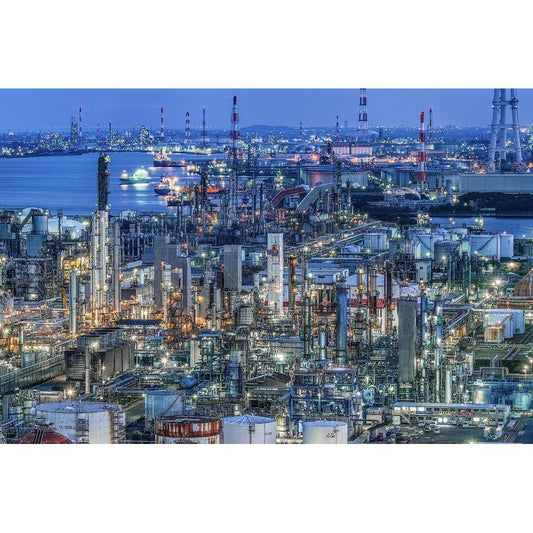 Coastal Industrial Area Black Modern Wood Framed Art Print with Double Matting by Tetsurou, Kobayashi