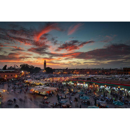 Sunset Over Jemaa Le Fnaa Square In Marrakech-Morocco Black Modern Wood Framed Art Print with Double Matting by Mirica, Dan