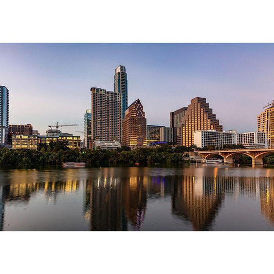 City skyline reflects in the Colorado River in Austin-Texas-USA Black Modern Wood Framed Art Print with Double Matting by Haney, Chuck