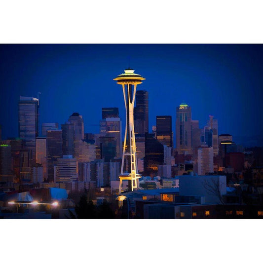 Washington State Abstract of downtown and Space Needle Black Modern Wood Framed Art Print with Double Matting by Jaynes Gallery
