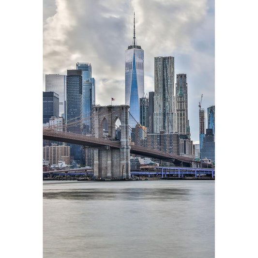 USA-New York The Brooklyn Bridge and New York City skyline Black Modern Wood Framed Art Print with Double Matting by Looney, Hollice