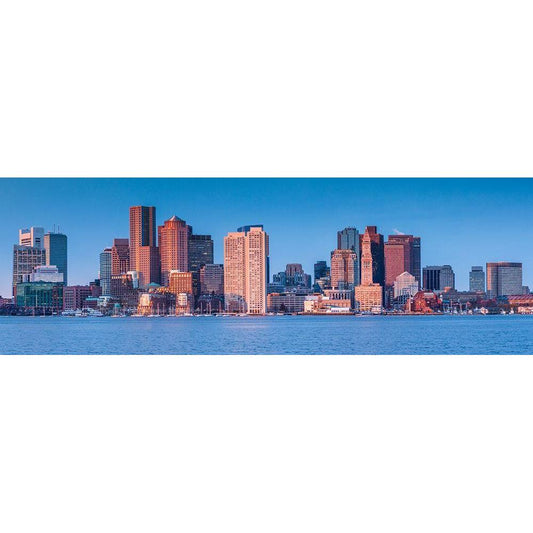 New England-Massachusetts-Boston-city skyline from Boston Harbor-dawn Black Modern Wood Framed Art Print with Double Matting by Bibikow, Walter