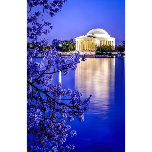 The Jefferson Memorial with cherry blossoms at the Tidal Basin-Washington DC Black Modern Wood Framed Art Print with Double Matting by Perry, William