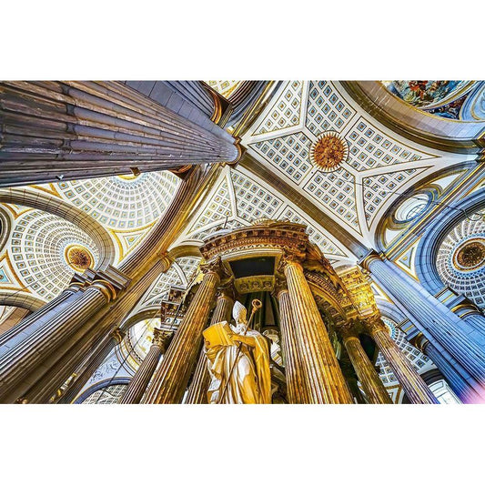 Basilica ceiling Bishop Statue-Cathedral Puebla-Mexico Built in 15 to 1600s Black Modern Wood Framed Art Print with Double Matting by Perry, William