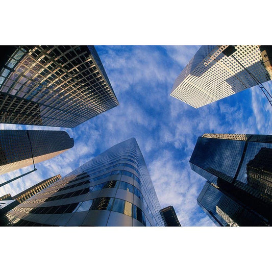 Looking up into Denver-Colorado skyline Black Modern Wood Framed Art Print with Double Matting by SMO