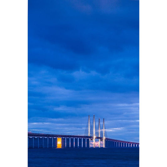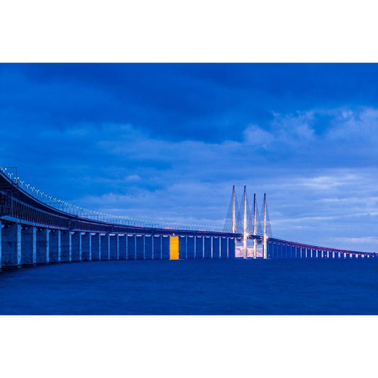 Sweden-Scania-Malmo-Oresund Bridge-longest cable-tied bridge in Europe-linking Sweden and Denmark-d Black Modern Wood Framed Art Print with Double Matting by Bibikow, Walter