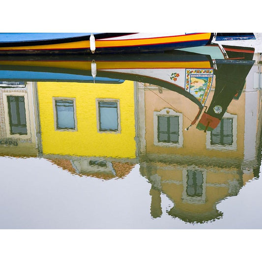 Portugal-Aveiro-Reflection of colorful buildings and painted Moliceiro boats in the canal Black Modern Wood Framed Art Print with Double Matting by Eggers, Julie