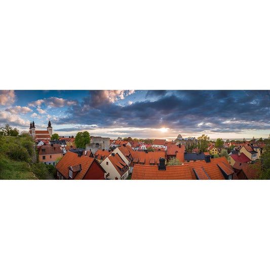 Sweden-Gotland Island-Visby-Visby Cathedral-12th century-and the city skyline Black Modern Wood Framed Art Print with Double Matting by Bibikow, Walter