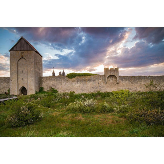 Sweden-Gotland Island-Visby-12th century city wall-most complete medieval city wall in Europe-Oster Black Modern Wood Framed Art Print with Double Matting by Bibikow, Walter