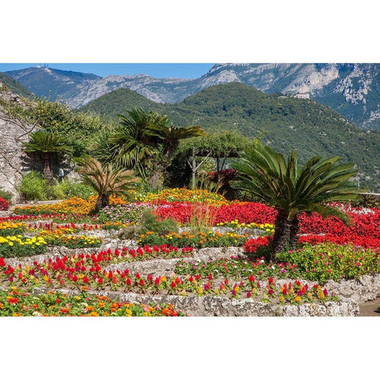 Italy-Ravello Flower garden of Villa Rufolo over looking the Amalfi Coast and the Gulf of Salerno Black Modern Wood Framed Art Print with Double Matting by Eggers, Julie