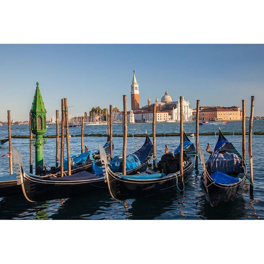 Italy-Venice View of gondolas in front of Piazza San Marco (St Marks Square) Black Modern Wood Framed Art Print with Double Matting by Eggers, Julie