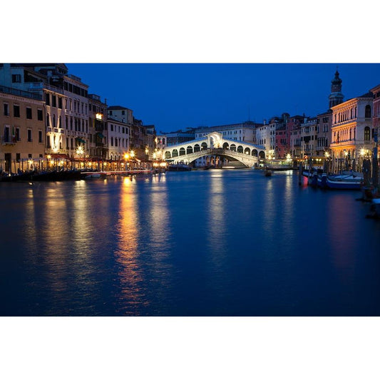 Italy-Venice Venices iconic Rialto Bridge at twilight Black Modern Wood Framed Art Print with Double Matting by Eggers, Julie