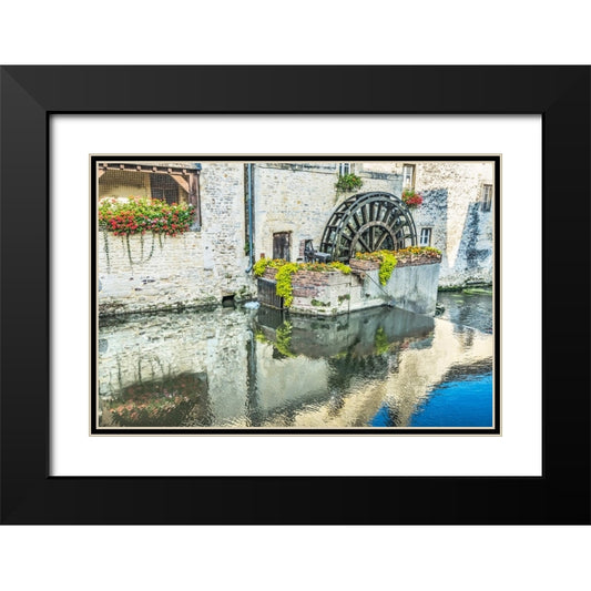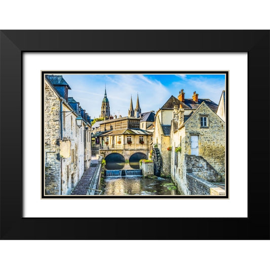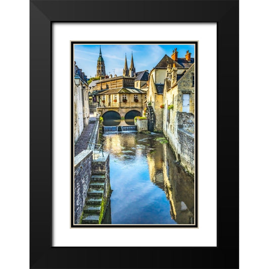 Colorful old buildings- Aure River reflection- Bayeux- Normandy- France Black Modern Wood Framed Art Print with Double Matting by Perry, William