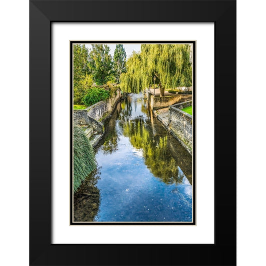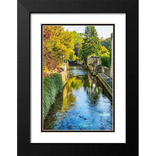 Colorful old buildings- Park Aure River reflection- Bayeux- Normandy- France Black Modern Wood Framed Art Print with Double Matting by Perry, William